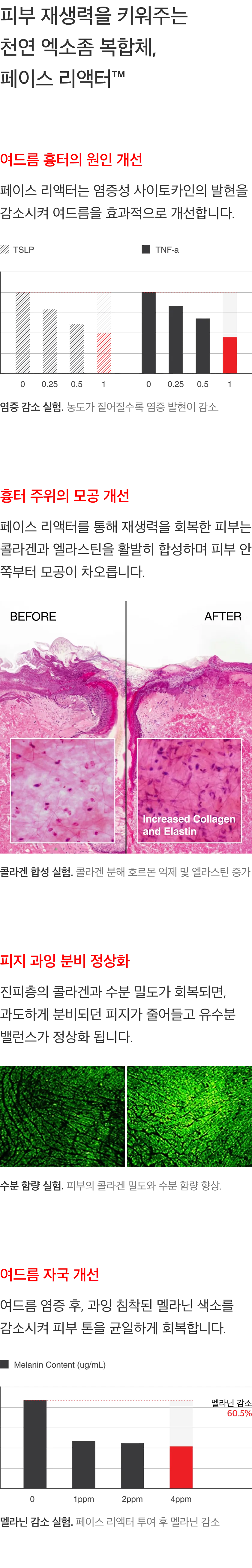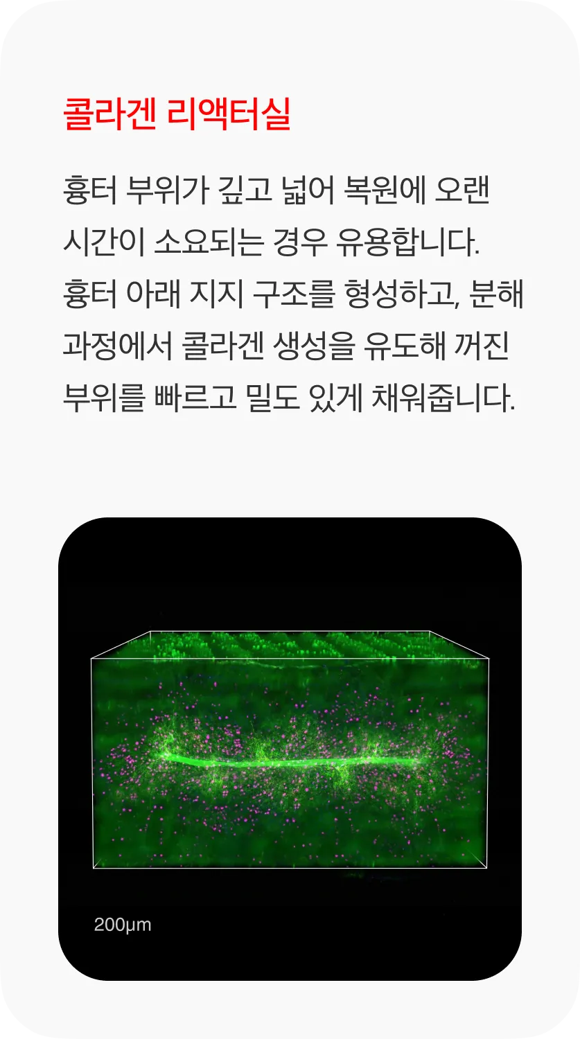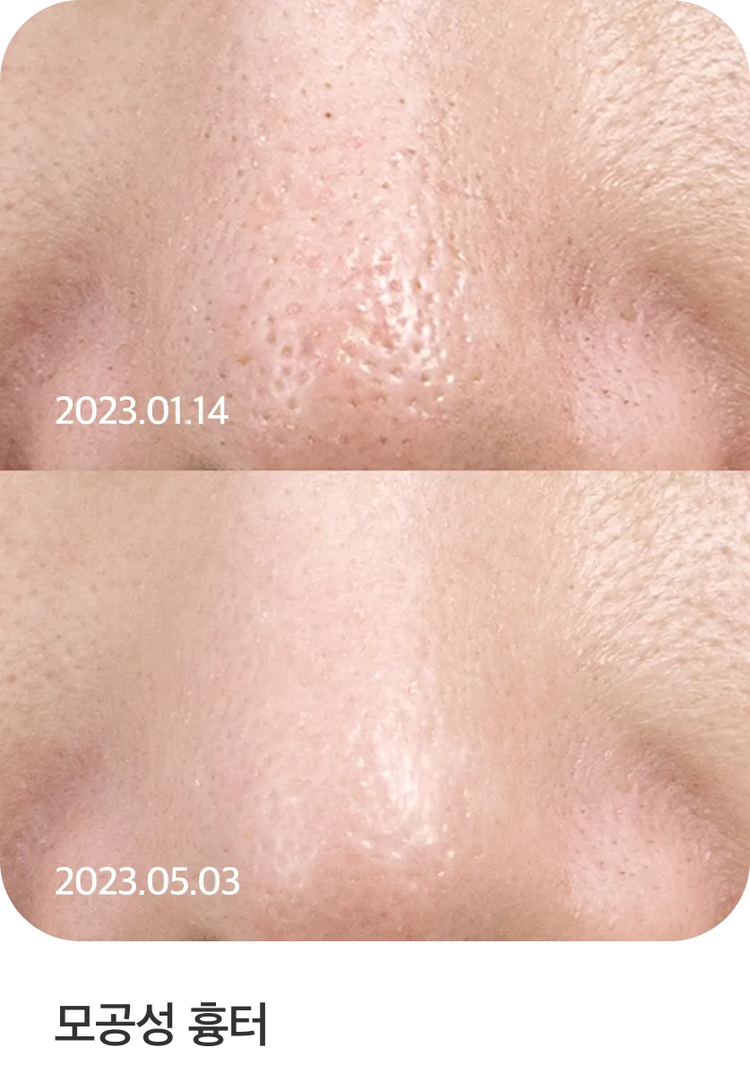 - 모공 개선. 모공 리액터가 콜라겐 생성을 촉진해 진피 치밀도를 높임으로써 피부 안쪽부터 모공이 차오르게 돕습니다.