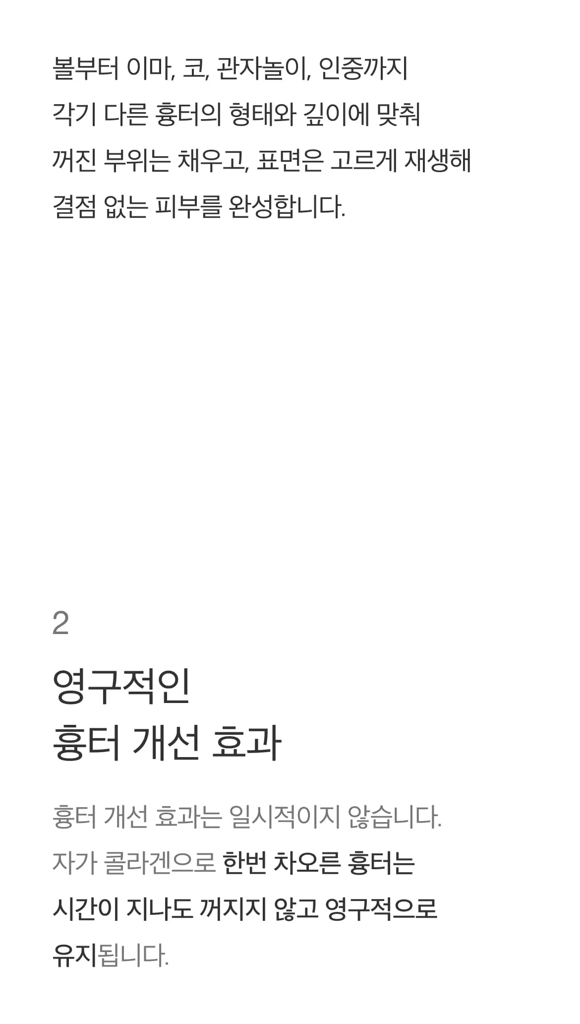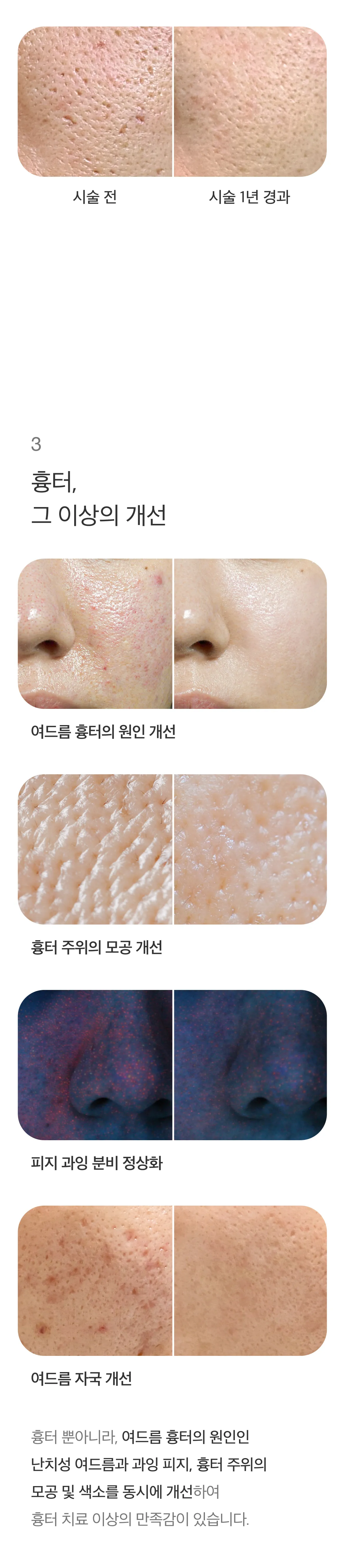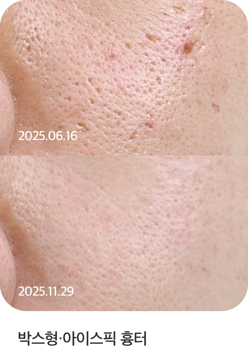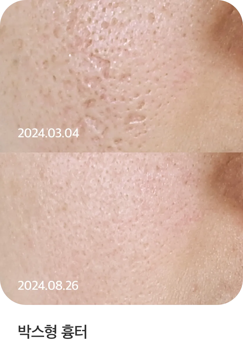 - 모공 개선. 모공 리액터가 콜라겐 생성을 촉진해 진피 치밀도를 높임으로써 피부 안쪽부터 모공이 차오르게 돕습니다.