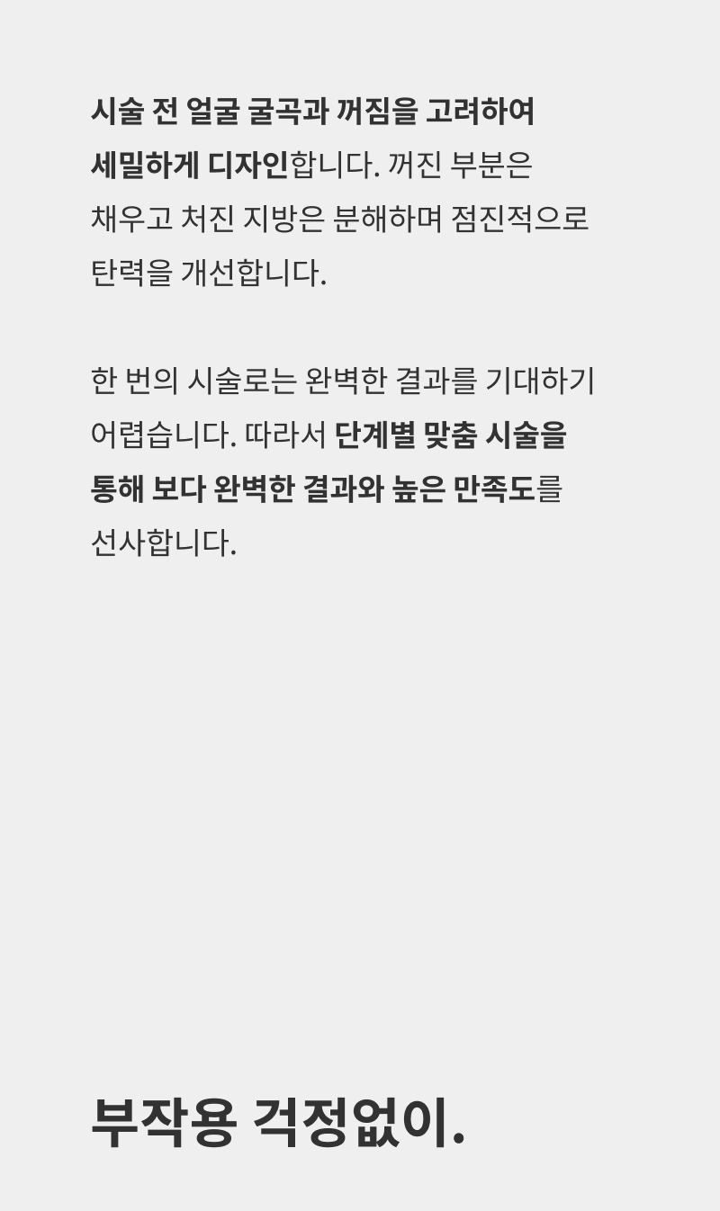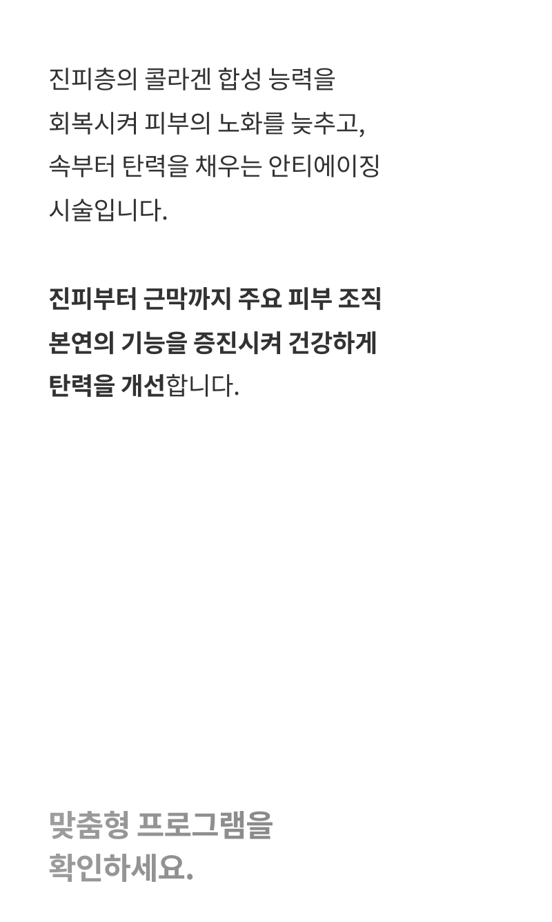 • 시술 후 일주일 정도 마사지, 격한 운동, 사우나를 삼가해주세요.